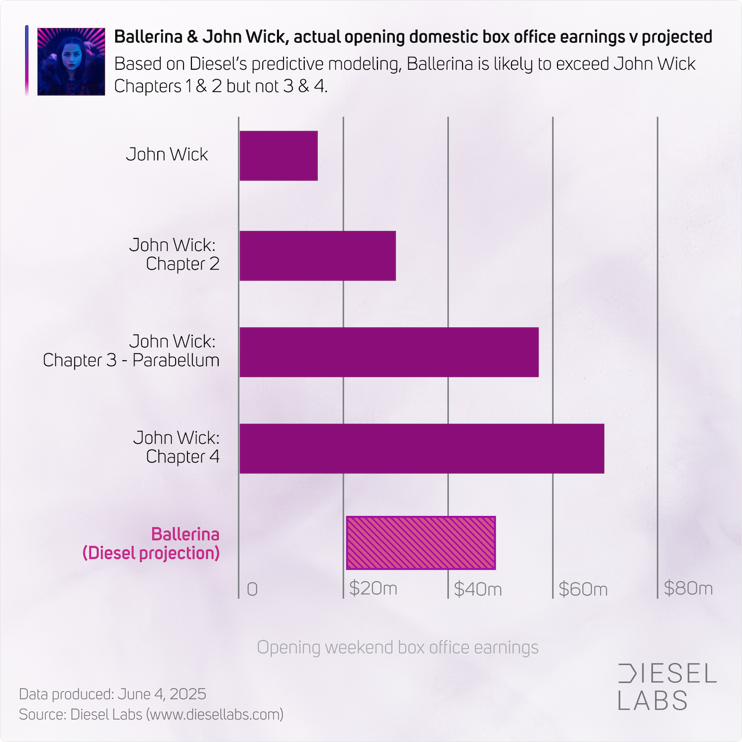 Will executives be dancing at the end of Ballerina’s opening weekend? Or will the John Wick spinoff get a Dear John? Whatever the case may be, keep your sights on Diesel Labs to find out.