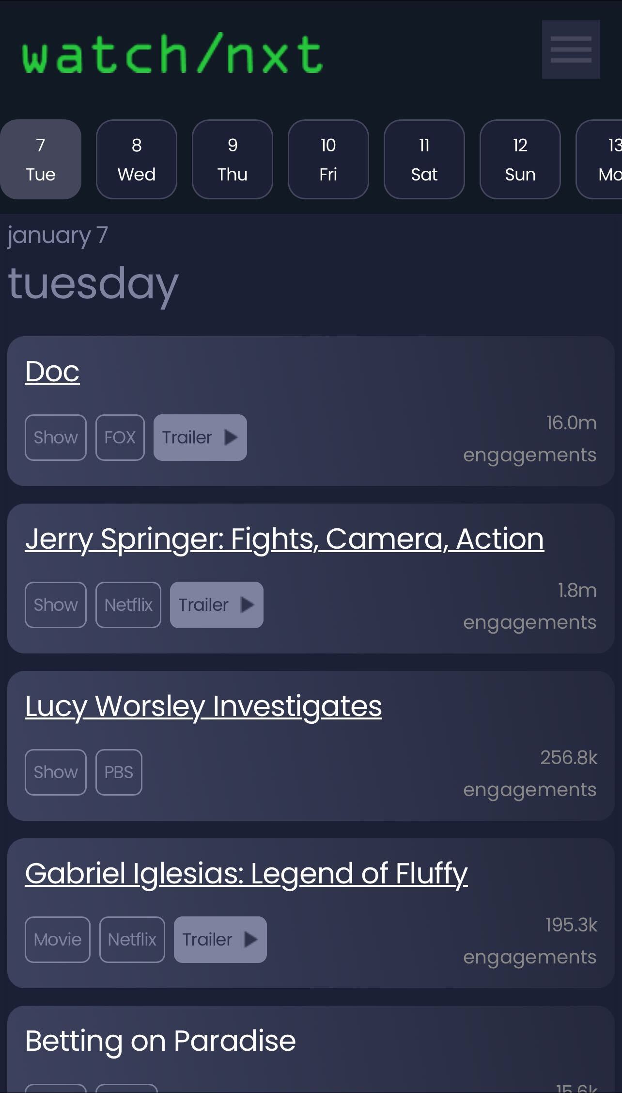 With that and many more tools, try watchNXT at https://watchnxt.com/ to find your next favorite show or movie!